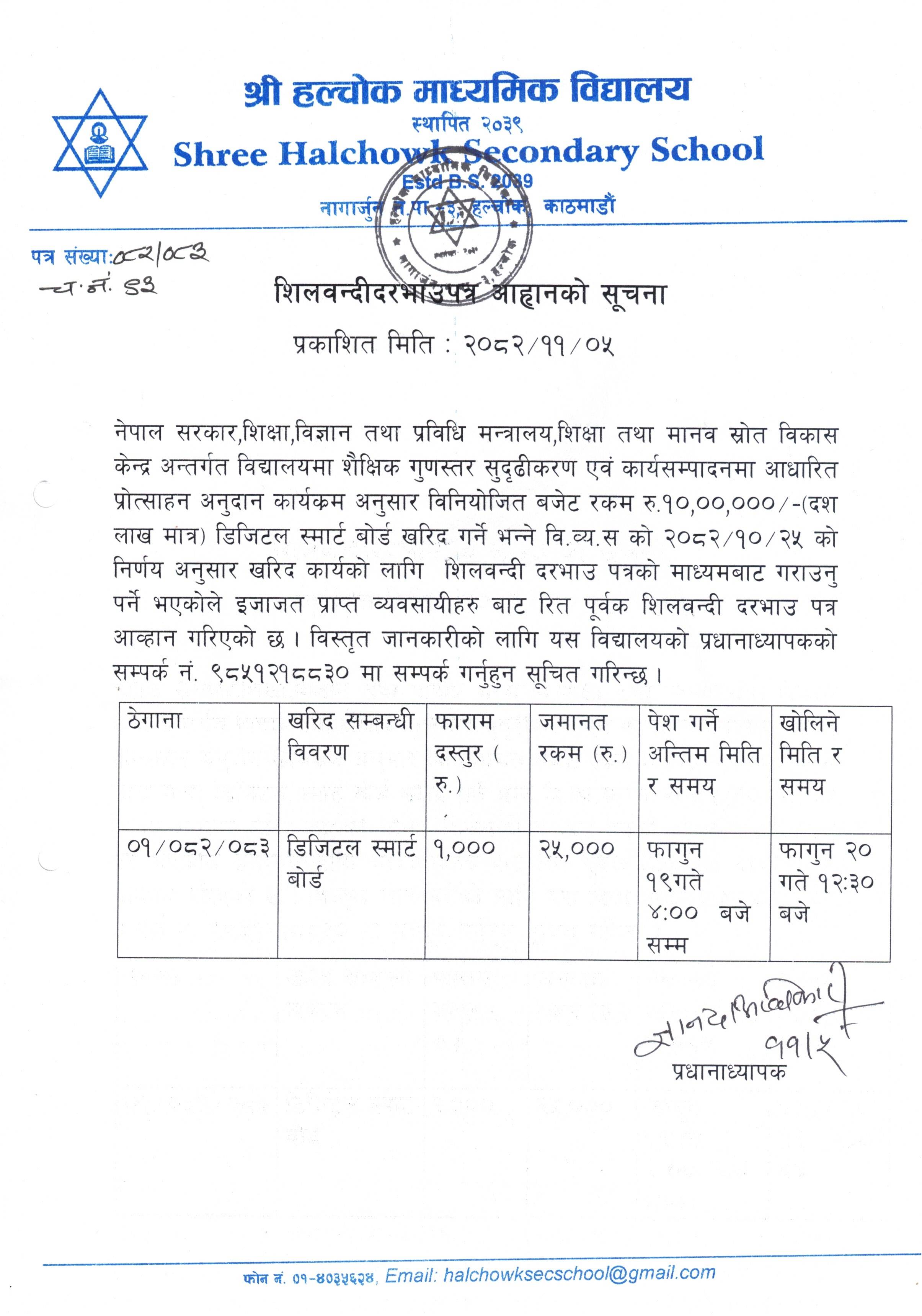 शिलबन्दी दरभाउपत्र आव्हान सम्बन्धी सूचना (हल्चोक मा.वि)