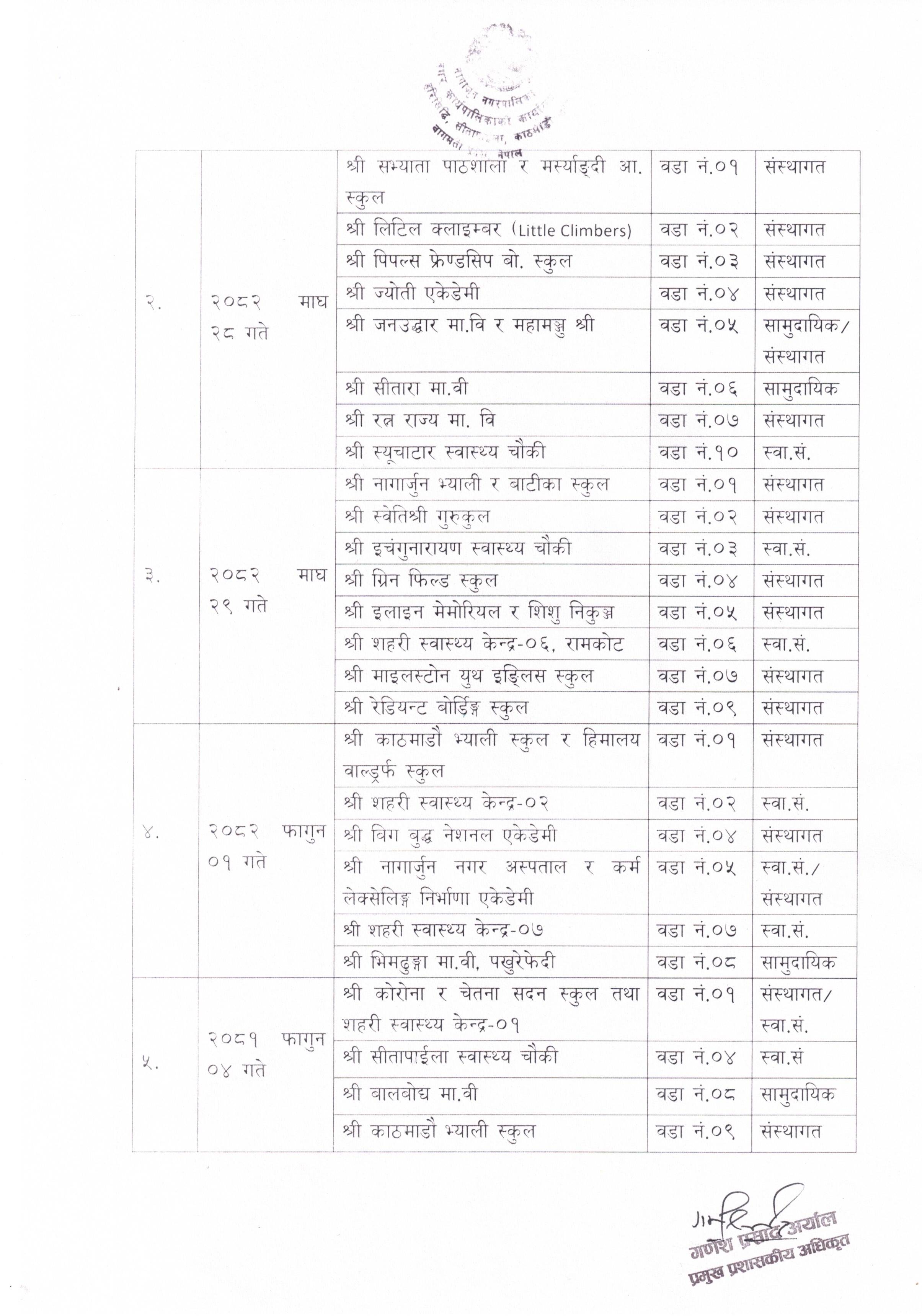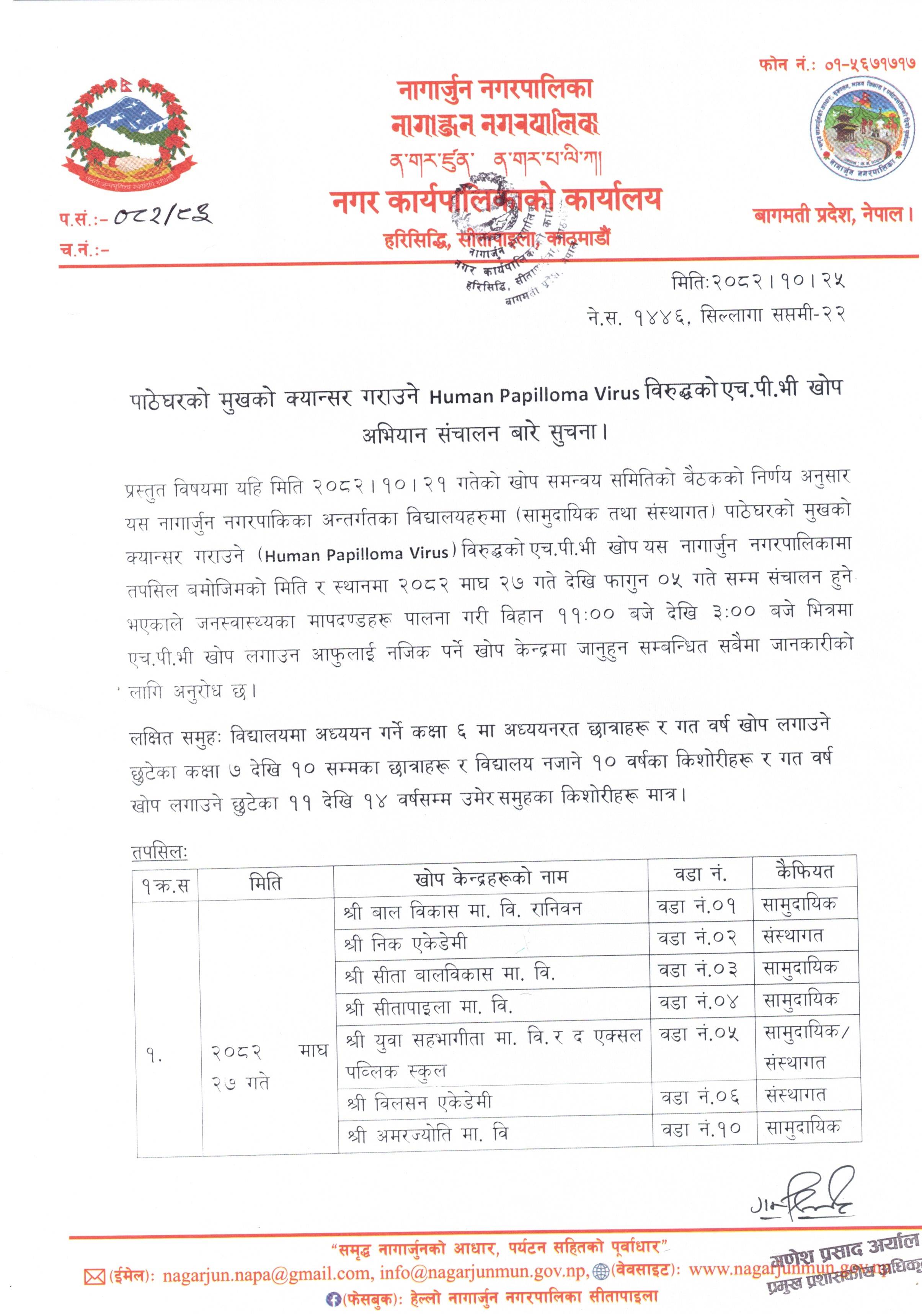 पाठेघरको मुखको क्यान्सर गराउने Human Papilloma Virus विरुद्धको एच.पी.भी खोप अभियान संचालन बारे सूचना ।