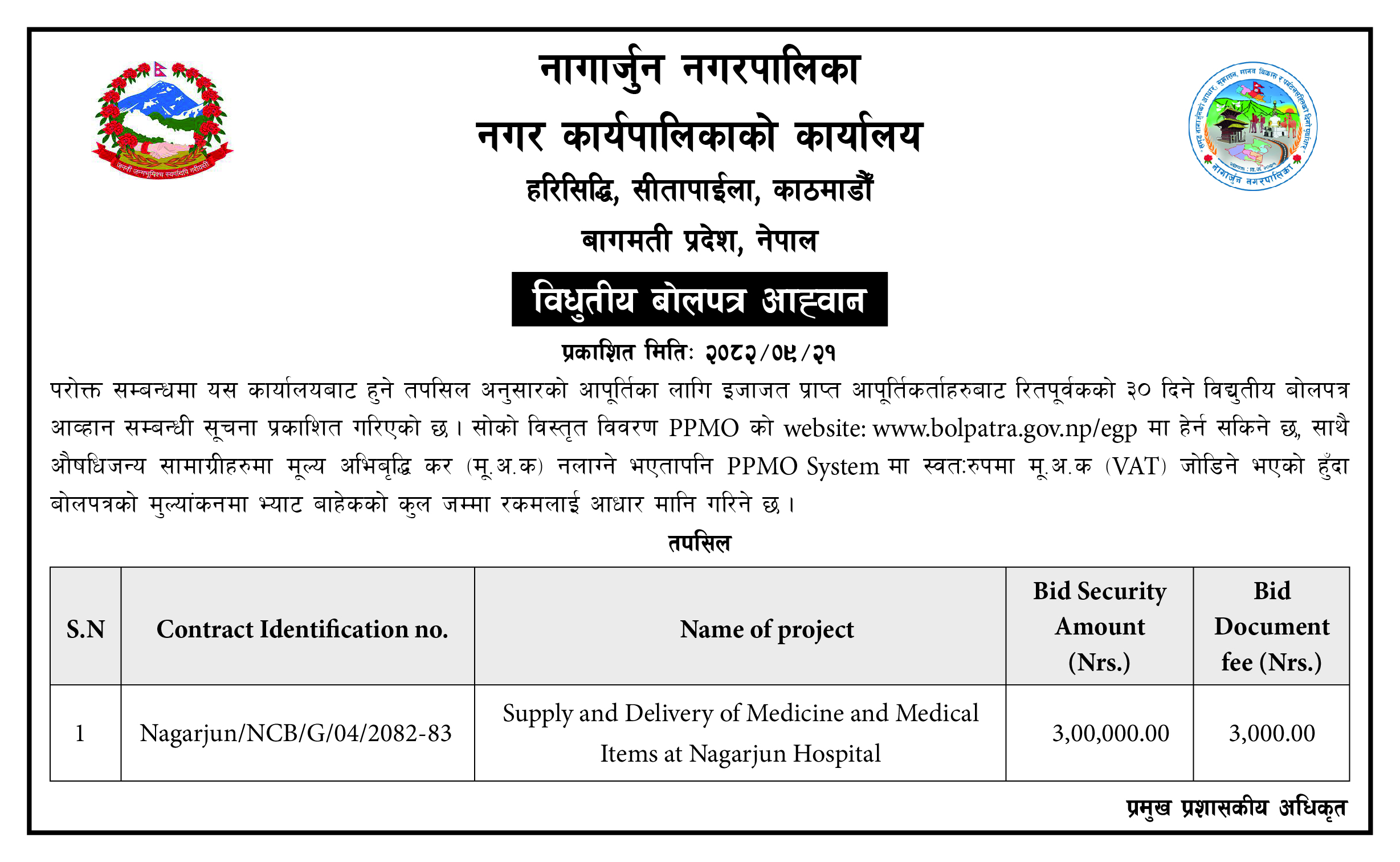 विद्युतीय बोलपत्र आव्हान सम्बन्धी सूचना ।।।
