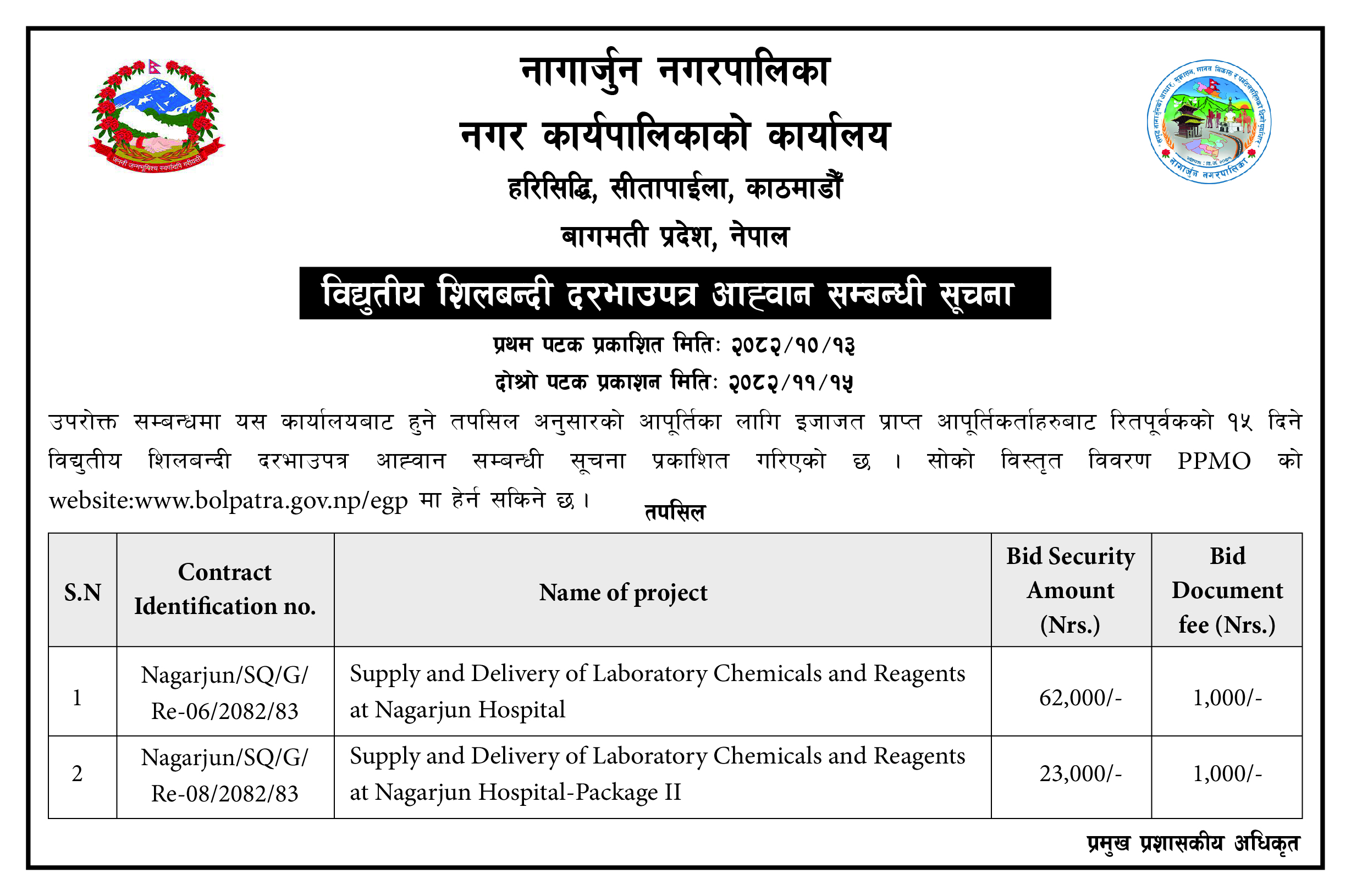 शिलवन्दी दरभाउपत्र आव्हान सम्बन्धी सूचना ।।।।