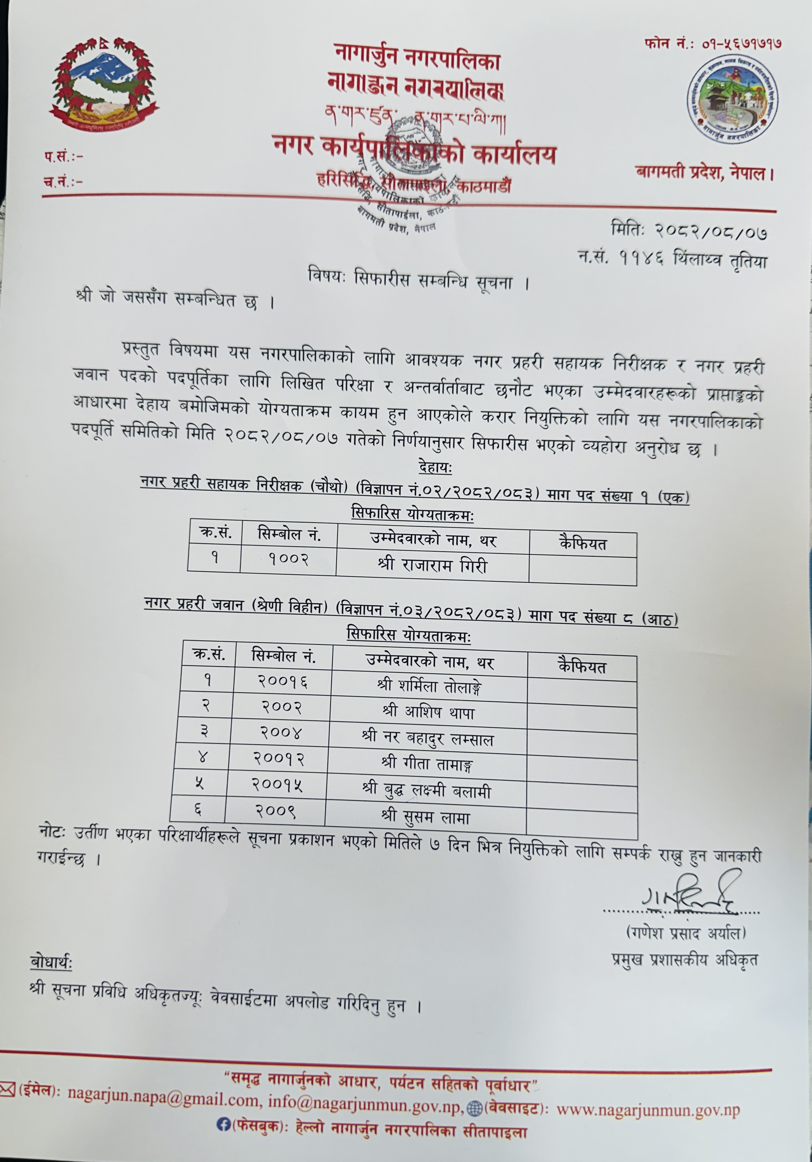 सिफारीस सम्बन्धि सूचना !!